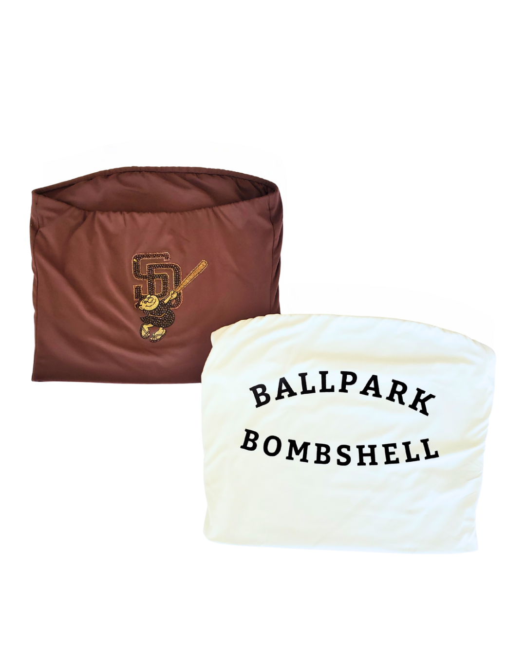 Built for Confidence. Designed to stand out. The Bombshell Tube Top is your go-to for stadium days! Featuring a sculpting stretch fit and CUSTOM HEAT-PRESSED Graphics.
